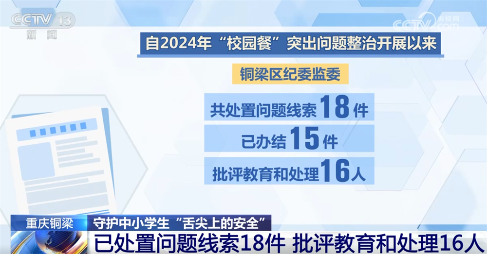“校园餐”关系着学生的身体健康,“孩子吃得好欠好、安不平安”是社会关心的平易近生核心。整治“校园餐”等范畴群众身边不正之风和问题,也是党的二十大以来纪检监察机关的工做沉点之一。正在沉庆铜梁,本地问题导向,鞭策多项“校园餐”范畴,守勤学生们“舌尖上的平安”。